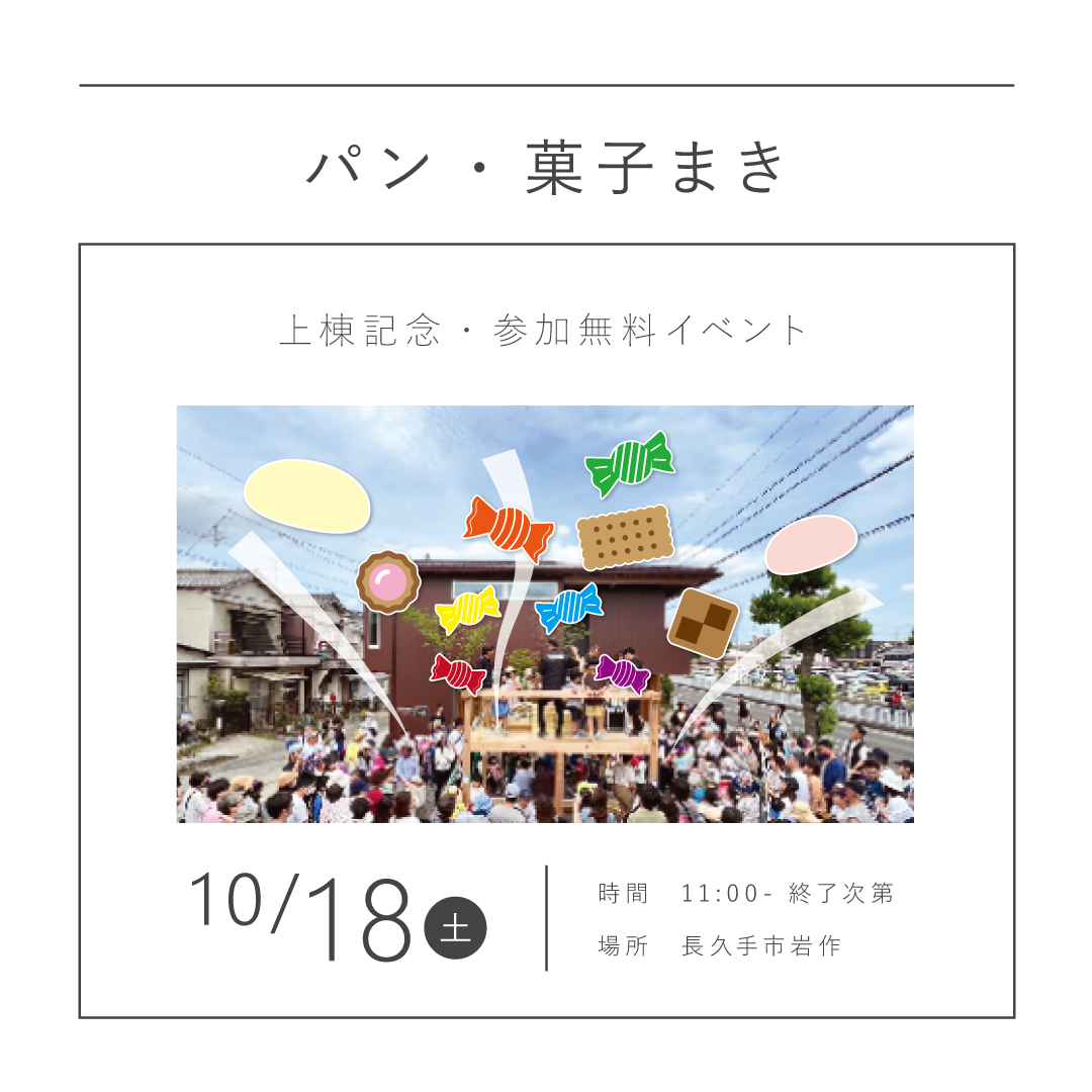 このたび、長久手市岩作に新しい建物を建てることとなりました。 そこで上棟を記念し、「パンと菓子まき」を開催いたします。 当日ふるまうのは、長久手で人気のベーカリー[ベンケイ]のパンやお菓子です。 お子様から大人の方まで、どなたでもご参加いただけます。 ご家族やご友人とご一緒に、ぜひお気軽にお越しください。 みなさまと楽しいひとときを過ごせますことを、心より楽しみにしております。 クリック→▶開催場所はこちら